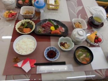 栄養課より、お客様のお好きなお刺身や旬の食材をたくさん盛り込んだ、お祝御膳を提供させていただきました。