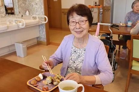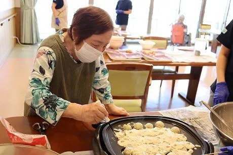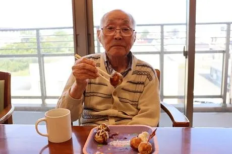 4階フロアでは、たこ焼きパーティーを行いました!今回は、たこ焼きだけではなくホットケーキミックスを使って、ベビーカステラも作りました!しょっぱいもの・甘いもの、同時に楽しんでいただきました!皆さまにお手伝いいただき、あっという間にたこ焼きとベビーカステラが完成しました。