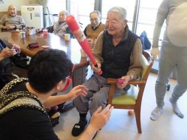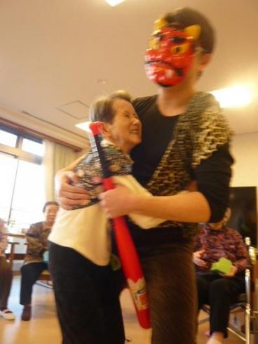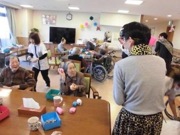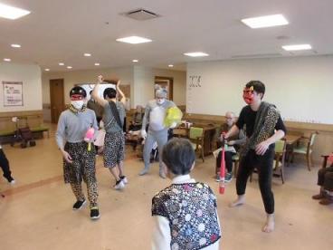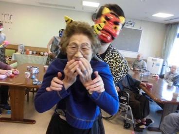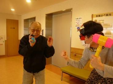 おやつの時間に合わせて、鬼に扮した職員とネズミ!?が各フロアをまわり、皆様に鬼退治をしていただきました。
