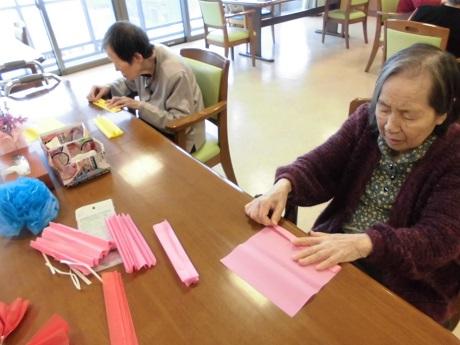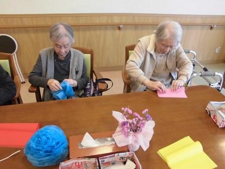 今日はフロアを飾りつけするために、お花紙を使ってたくさんのお花を作っていただきました。どんなふうに飾りつけされるか楽しみですね!