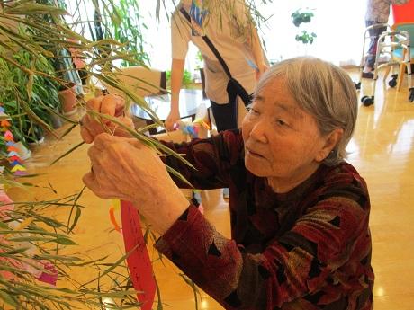 先日、皆様に書いていただいた短冊を飾っていただきました。短冊や飾りで、きれいな七夕飾りができてきました!