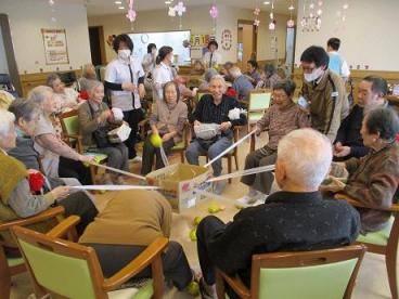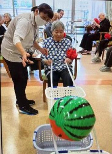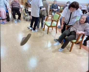 赤・白の2チームに分かれてスリッパ飛ばし・輪っかリレー・ボール転がし・玉入れの4競技を行いました。