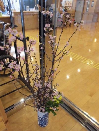 上越地方は「大雪警報」や「大雪注意報」の発令がまだまだこれからだと言うのに、ロビーに飾られたのは、サクラです。