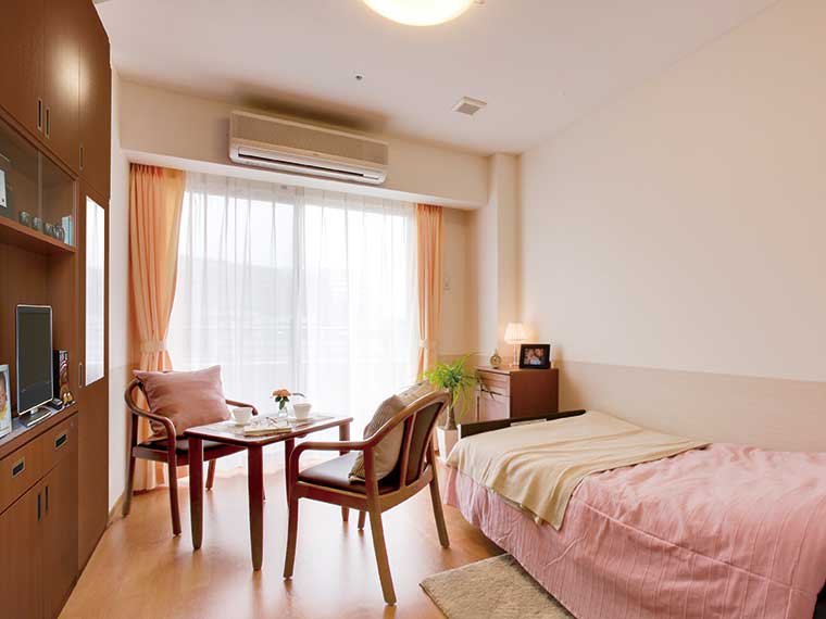 全室個室、居室は完全プライベート空間。基本的な家具、寝具は標準装備、トイレ洗面所完備となっており、ゆっくりお過ごし頂けます。