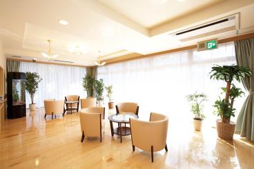 開放感あふれるエントランス。毎日のおしゃべりや面会時の団らんに、自由におくつろぎいただけます。
