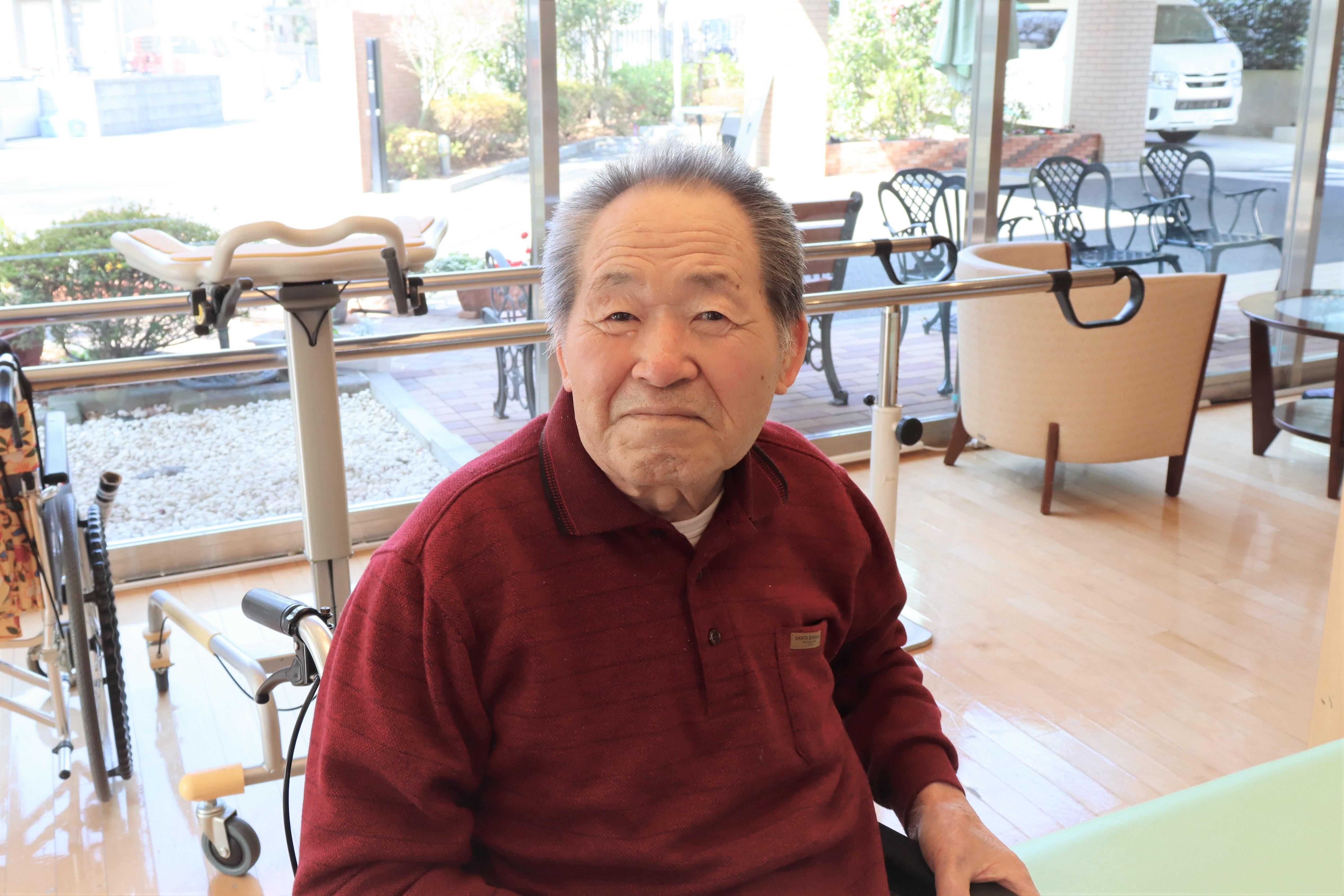 お客様のお身体の状態を把握するために、機能訓練士が筋力テストをしました。平行棒を使って、とってもしっかりとした足取りで歩いていらっしゃいます。お食事も美味しいと仰ってくださいます。いつもニコニコ、優しい笑顔のお客様。一緒にいる職員も笑顔になります!
