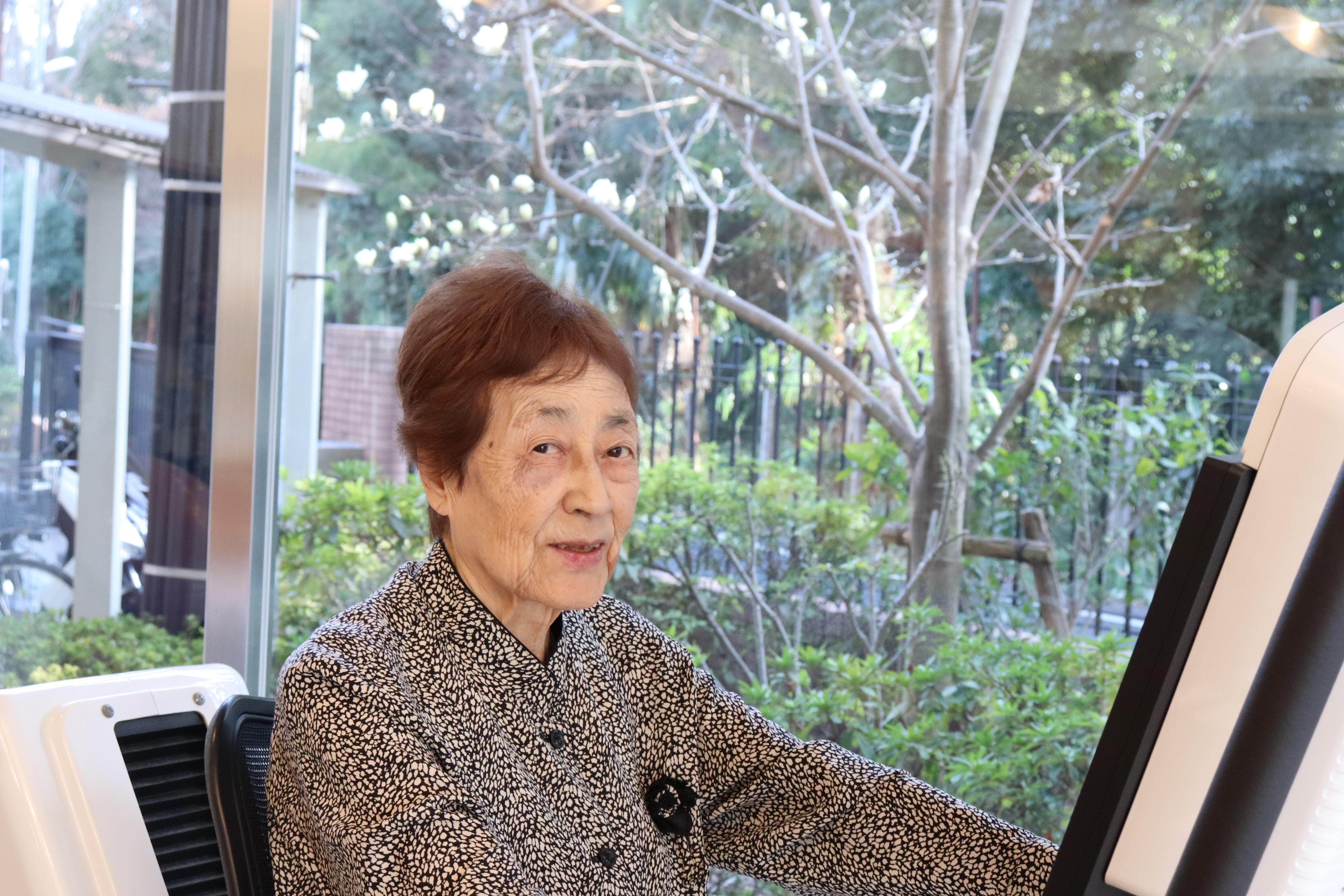 ロビーにあるコグニバイク、ガラス窓の向こうには艶やかな椿と可憐な木蓮が咲いてます。「カーテン開けてね!」清々しい景色の中で、コグニバイクを漕いで頂いています!
