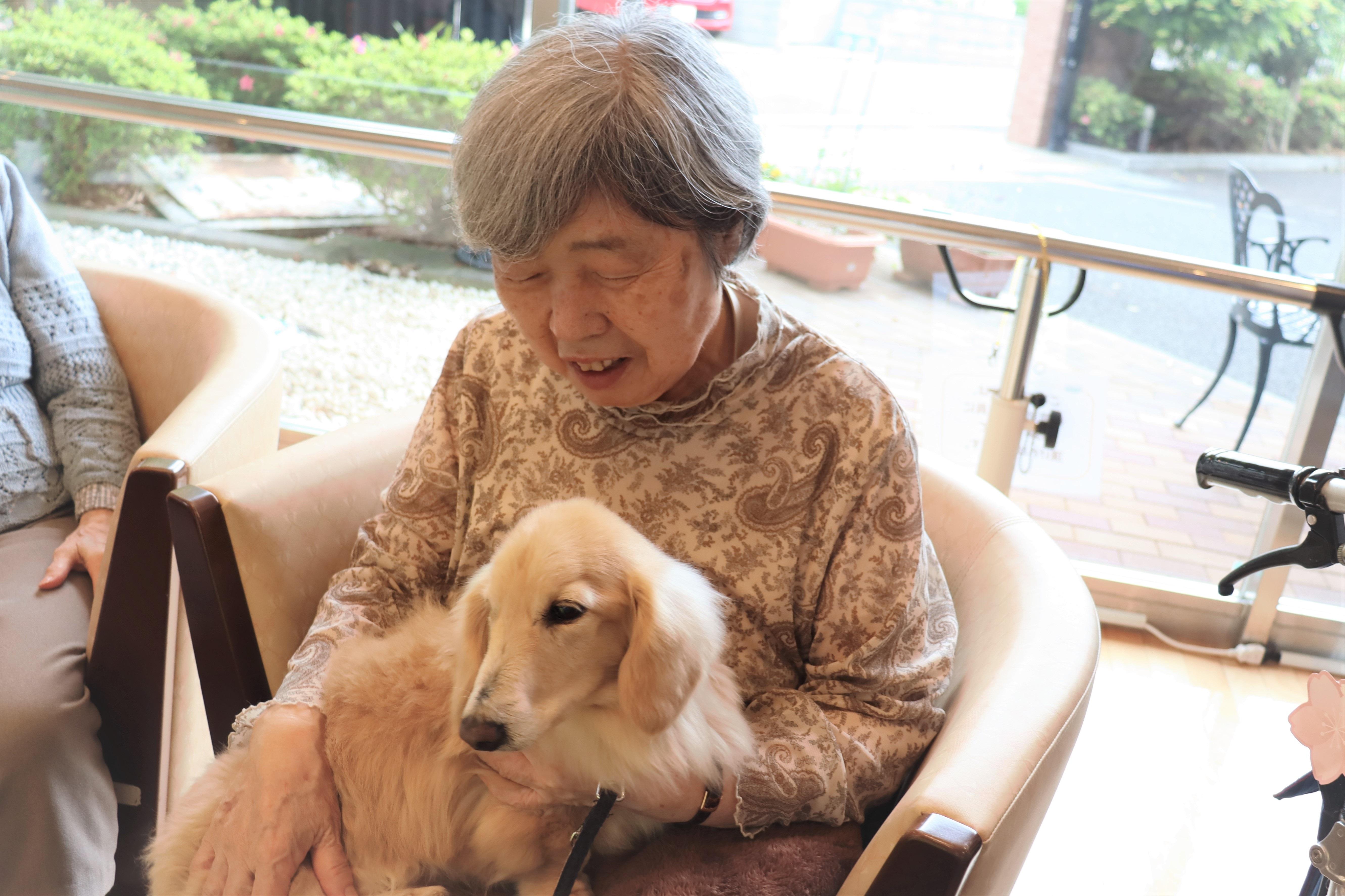 可愛い二匹のセラピー犬、お膝の上でうとうと・・・すっかりリラックス。もふもふの毛に癒されます。