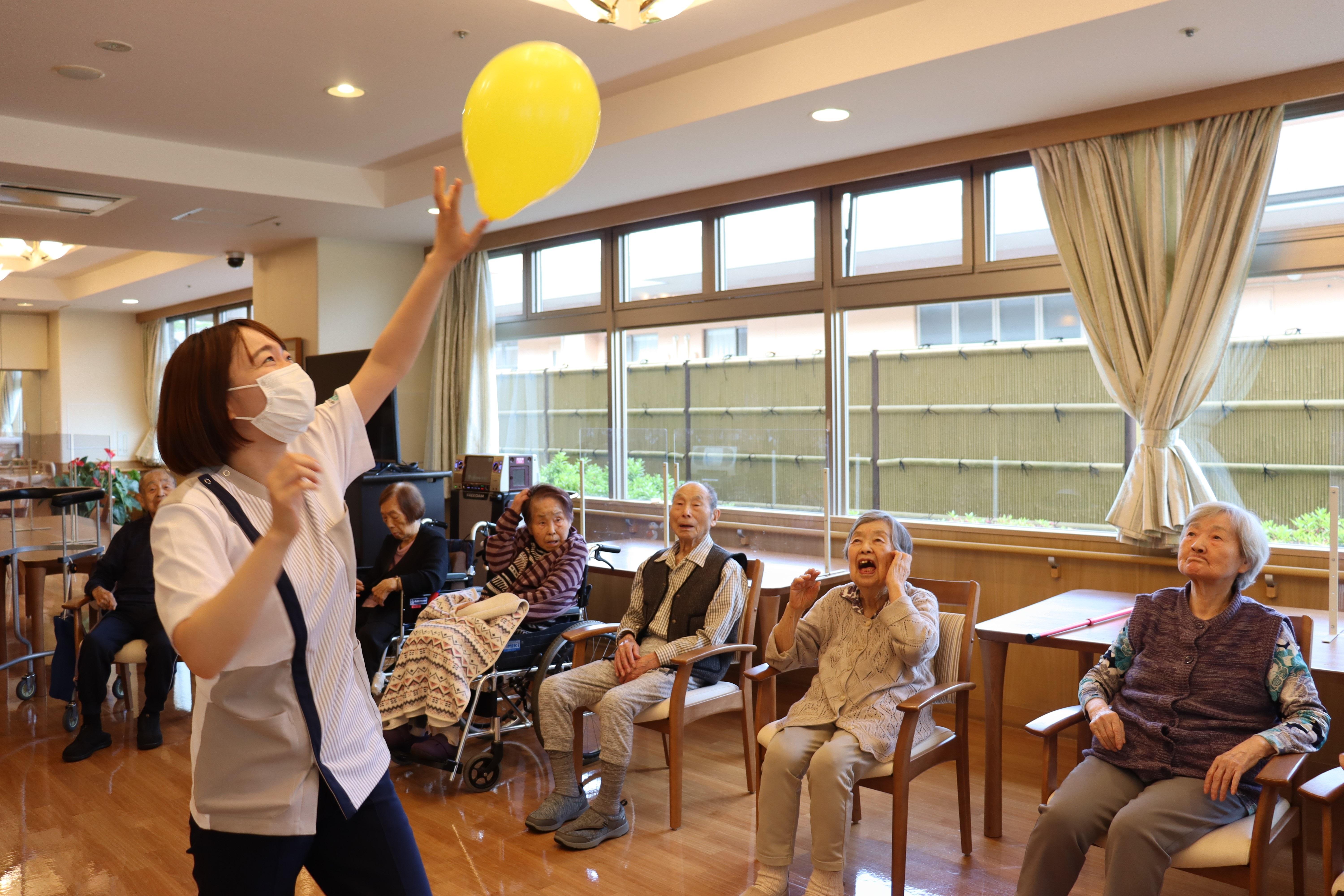 本日も開催しました!風船バレー!!!準備体操もばっちり!風船バレーを盛り上げるBGMもばっちり!お客様VS機能訓練士、大盛り上がりの風船バレー。笑いと悲鳴の風船バレー、楽しい時間を過ごしました。