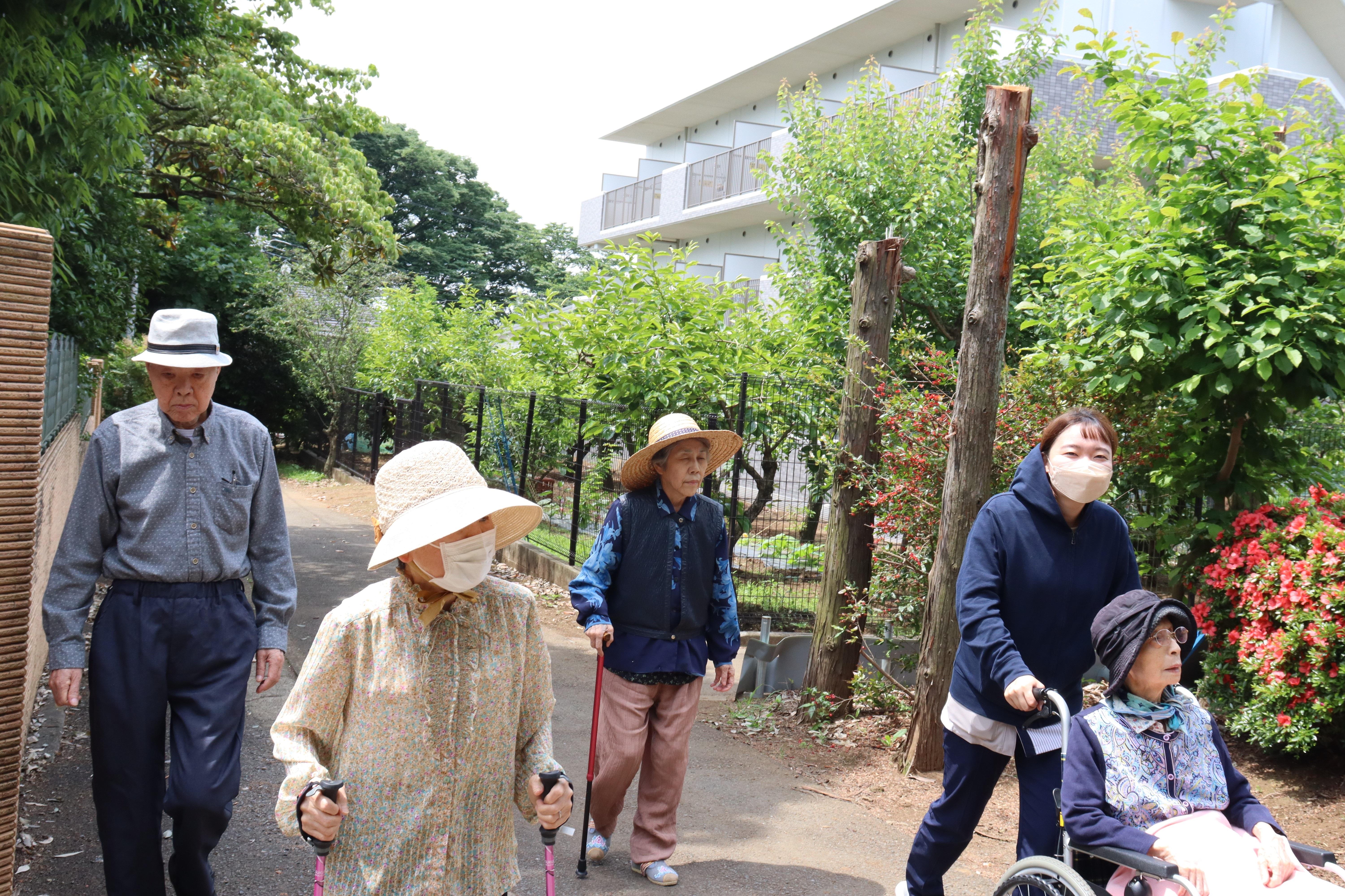 個別、グループに分けてお散歩を楽しんで頂いてます。こちらは影向寺までお散歩へ。
