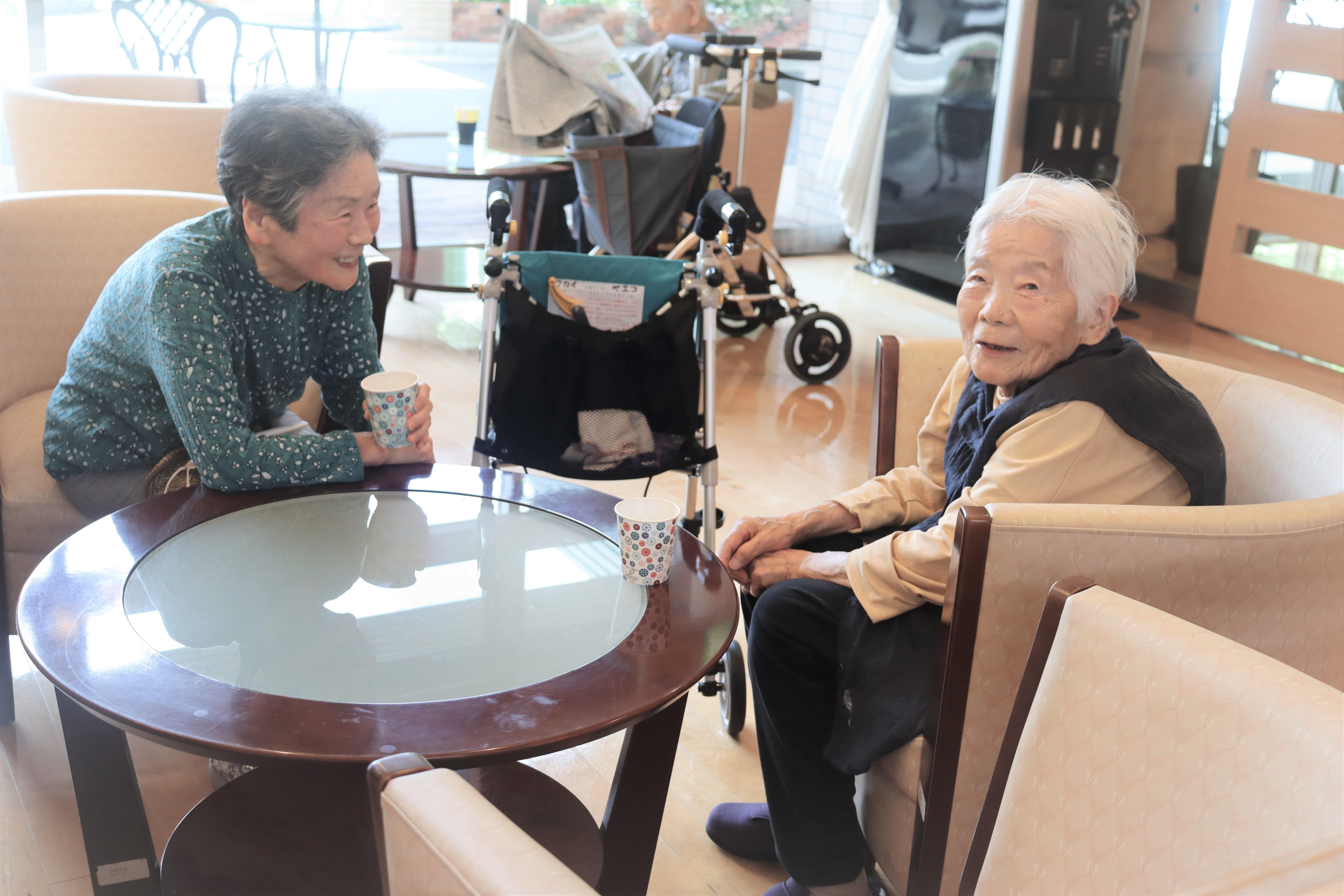 歩いてのお散歩、そして、車椅子でのお散歩。お散歩を通してお友達にお話しをして、社交の場でもあります。大切にしたい時間です。