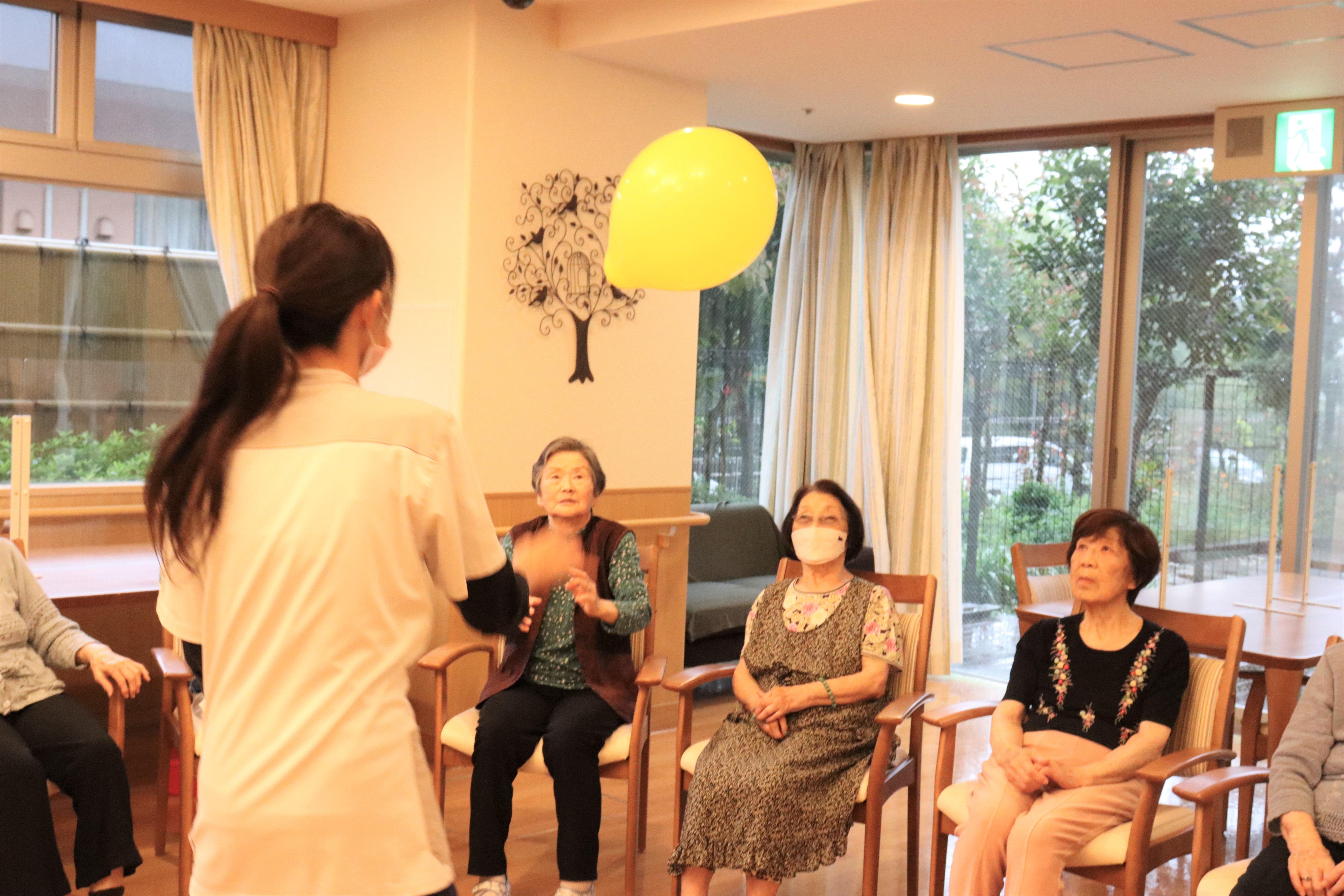 人気の風船バレーを開催しました。本気のアタック!炸裂です・・・歌謡曲を聴きながら、大興奮の風船バレー。皆様お疲れ様でした!