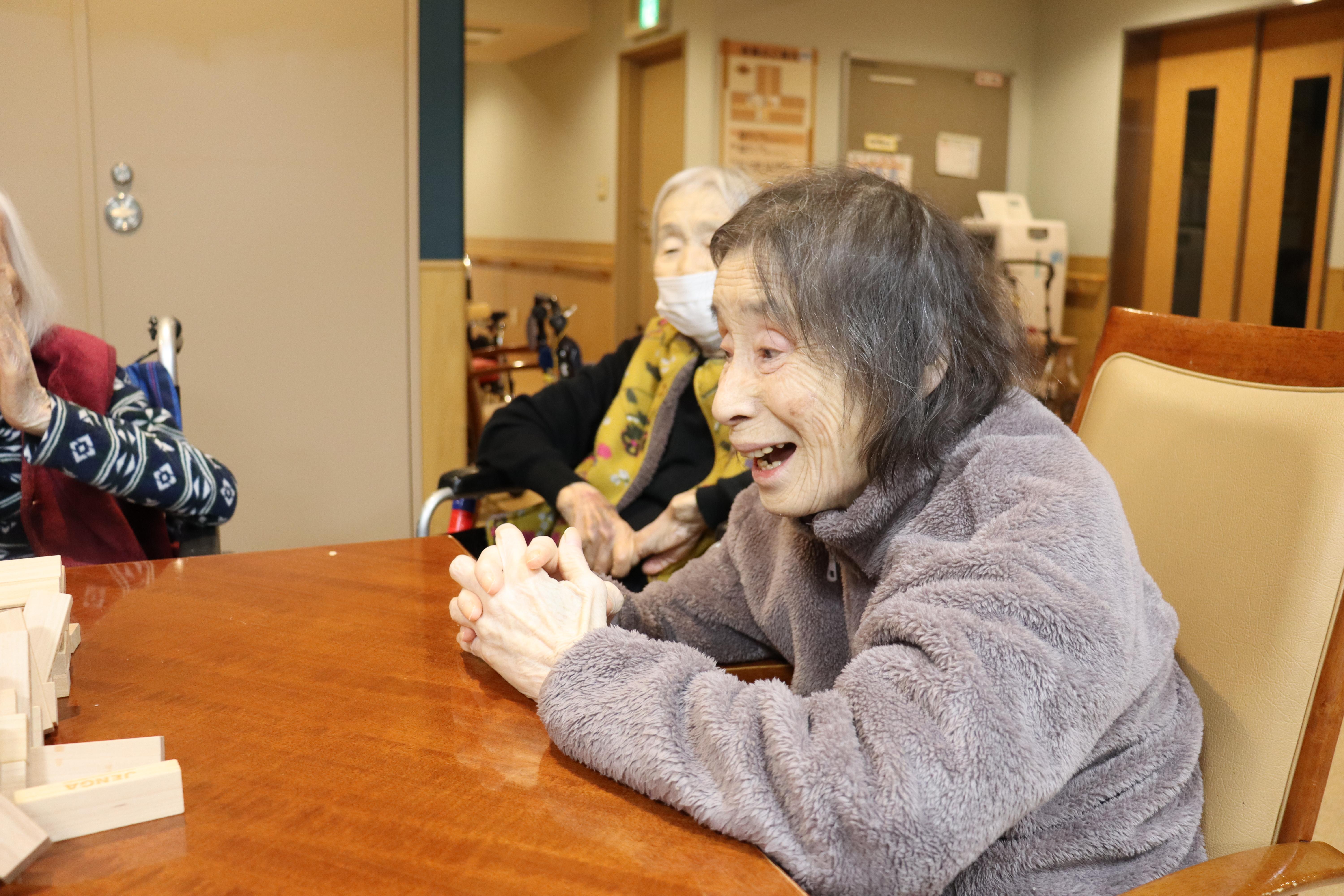 介護スタッフと一緒にジェンガを行いました。