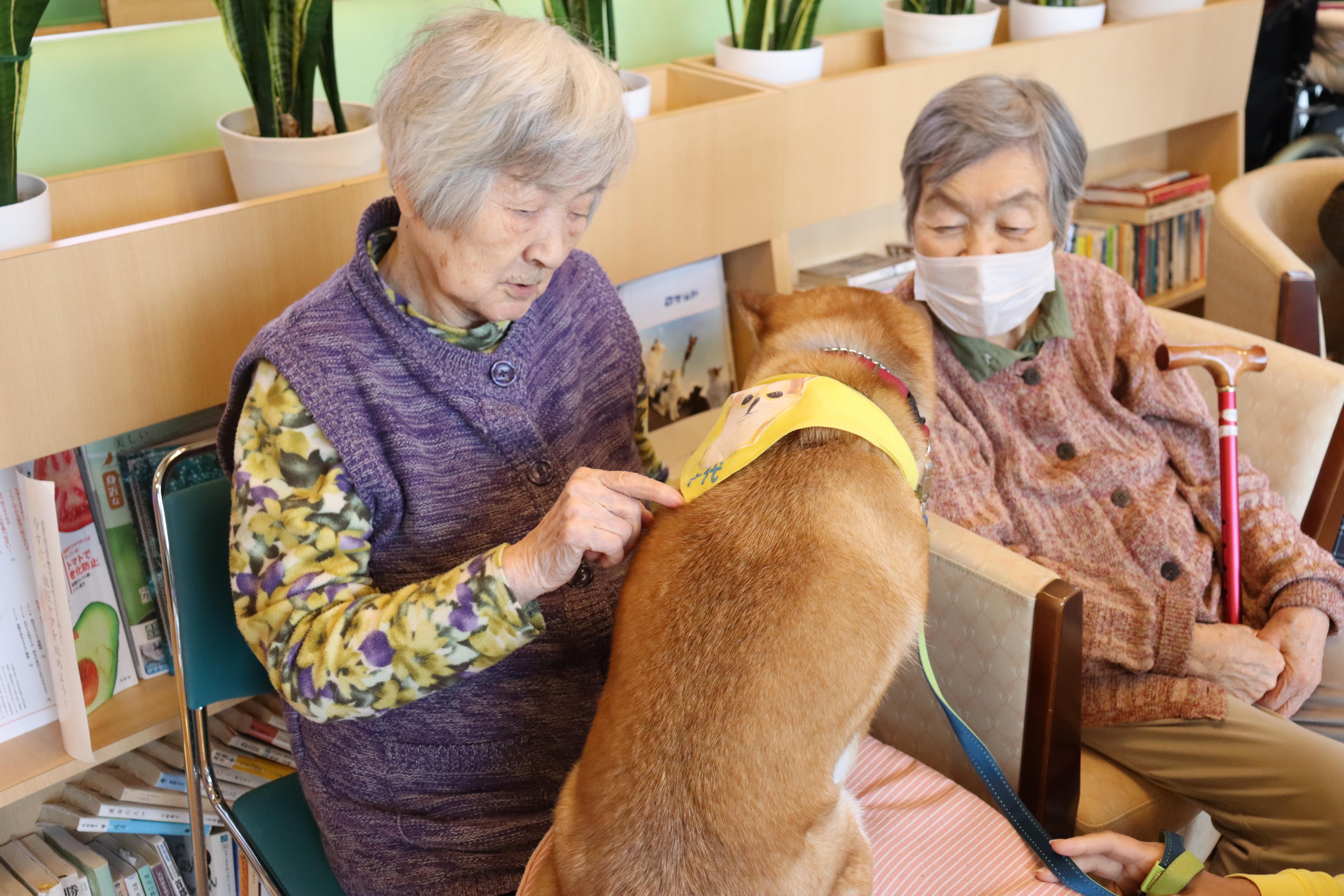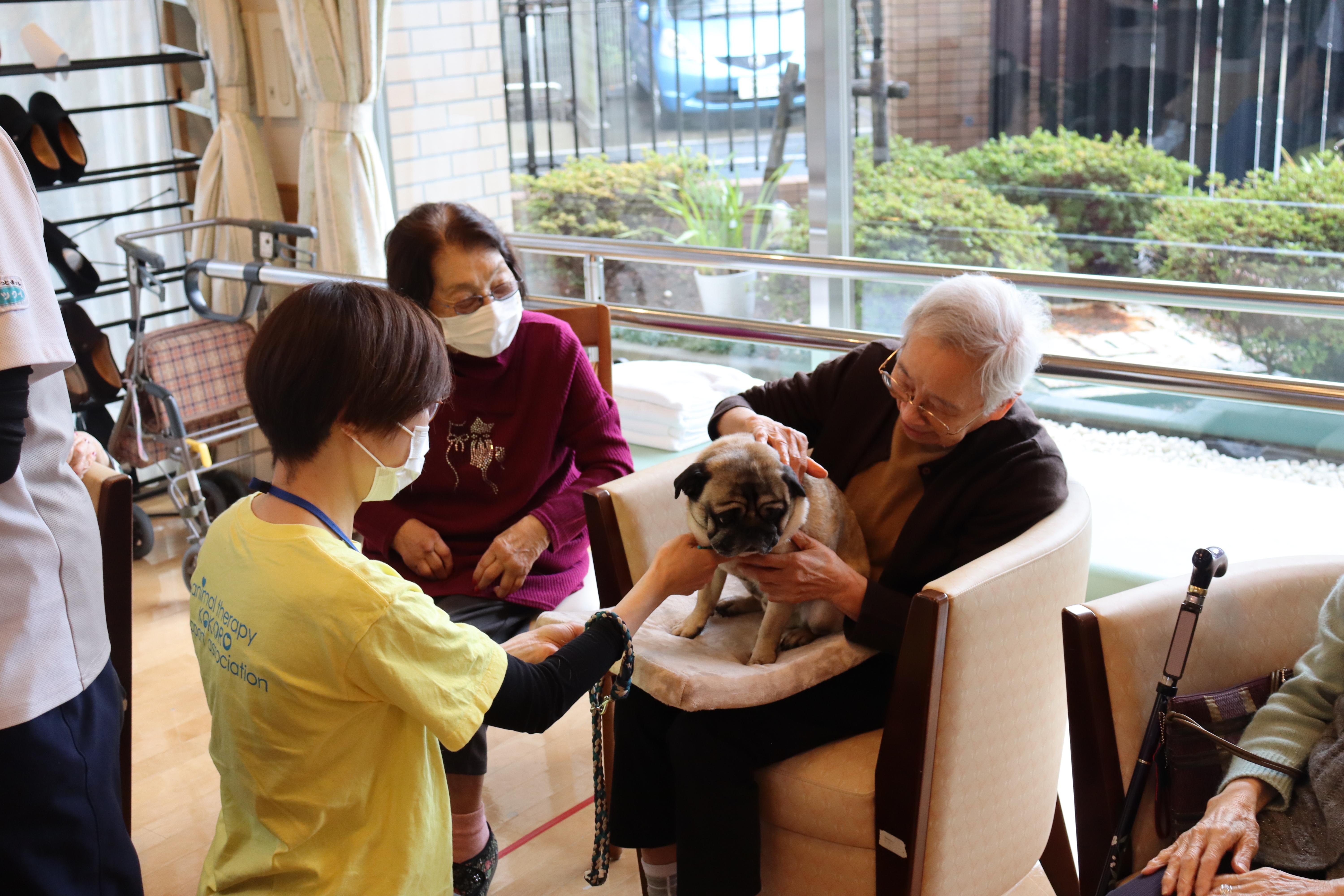 大人気のドッグセラピーがありました。柴犬とパグがきて、皆様大喜び!柴犬とパグを順番に抱っこし癒されました。お客様の中には昔飼われていた犬のことを思い出され、その犬との思い出を教えてくださいました。