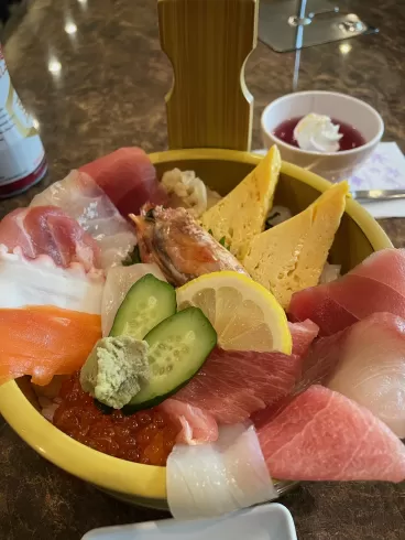 次のお楽しみは特選海鮮丼!見てください!この迫力!!美味しいに決まってる!!