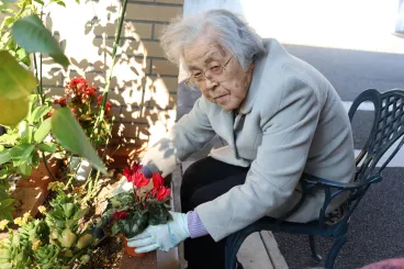 そのあとは、お花植えが好きなお客様と、玄関の花壇にシクラメンなどを植えました。