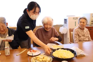 ホームでのバレンタインデーは、チョコもたっぷり!クリームもたっぷり!フルーツもたっぷり入ったクレープを、皆さんで作っていただきました!