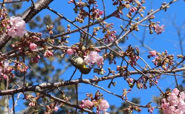 近隣の河津桜の並木が咲き始め、毎年恒例のお花見が始まりつつあります。