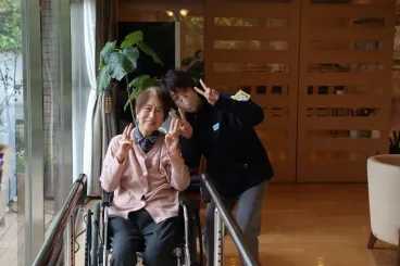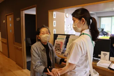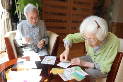機能訓練指導員と一緒に歩く練習や、ちぎり絵などのアクティビティでも、お身体の機能訓練を行っています。