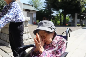お花見をしながら、いつもの野川神社で健康祈願です!