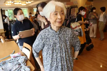 皆さま鏡をチェックしたり、「似合うかしら?」とお洋服をあてて見せてくださいます。