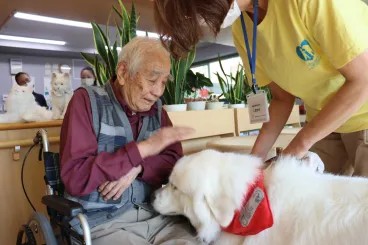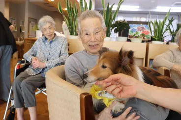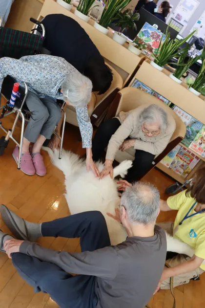 今回はグレートピレニーズとシェットランドシープドッグの2匹がお客様を癒しました。