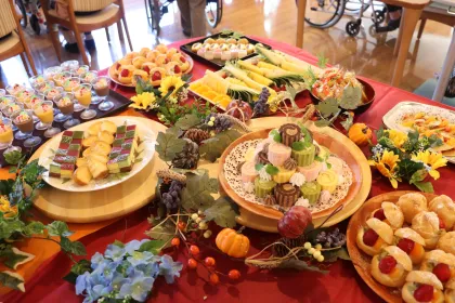 お写真の通り、和菓子や洋菓子に加えて、フルーツの盛り合わせも!