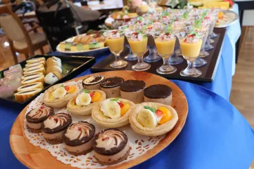 スタッフがお客様にお好みのスイーツを取り分けて、さあスイーツバイキングの始まりです。