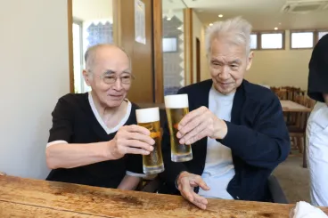 久しぶりに飲むビールは格別だそうで、お二人ともとっても素敵な表情で乾杯されていました。