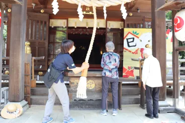 芽の輪をくぐり、邪気を払って頂いた後は、日々の感謝の気持ちを込めて参拝です。