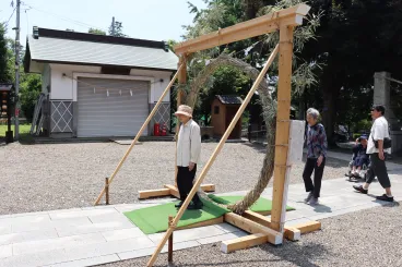 参道に設けられた『芽の輪』をくぐることで、疫病や日々知らず知らずのうちに犯している罪を清く正しく祓い清めて、後の半年を心豊かに暮らせるといわれております。