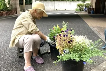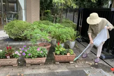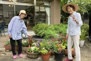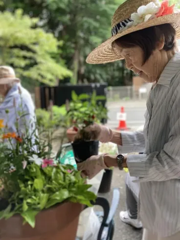 厳しい暑さが続き、屋外での作業活動は中止していましたが、ここ数日は陽射しが和らぐ日もあり、園芸部の皆さまの活動再開です。