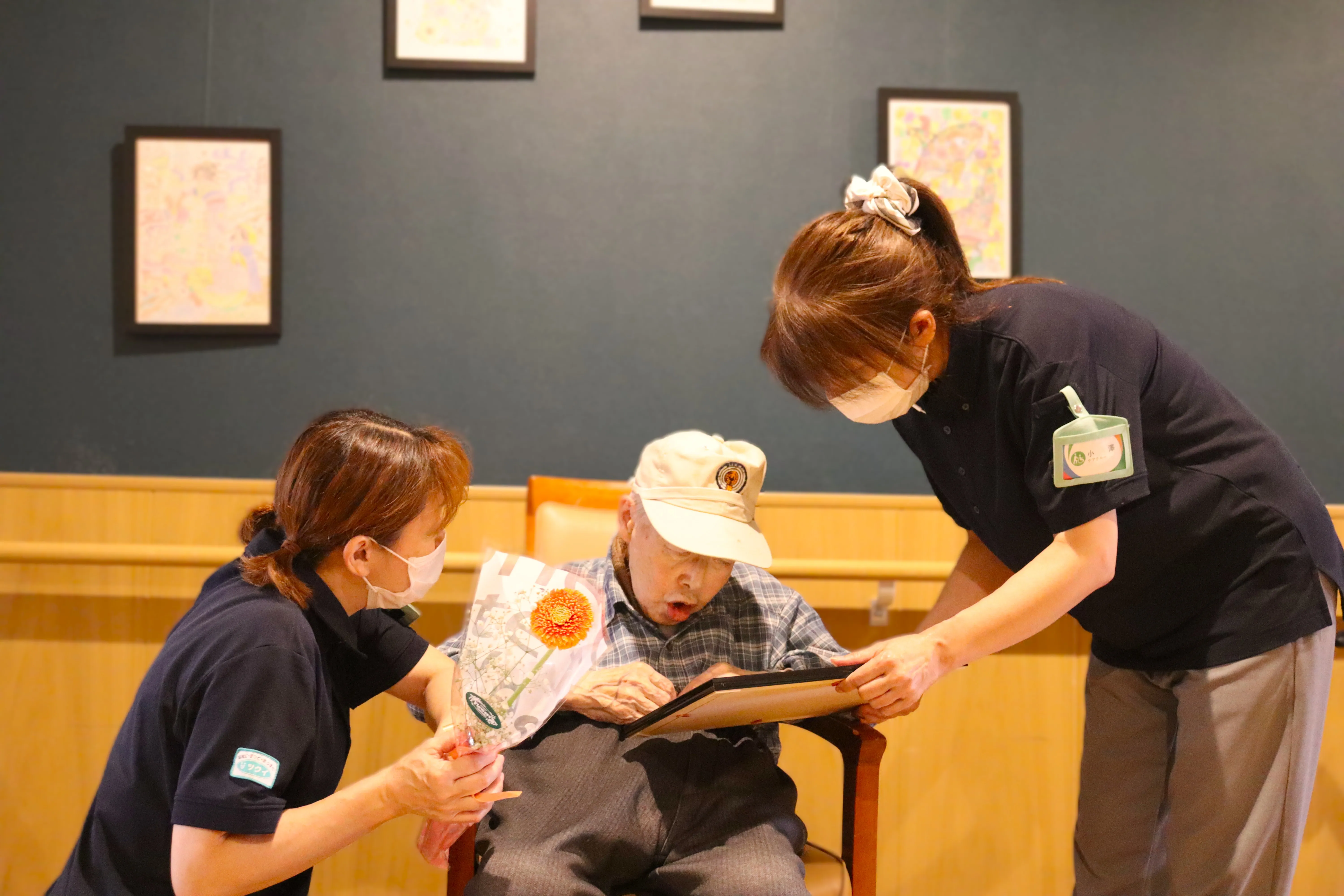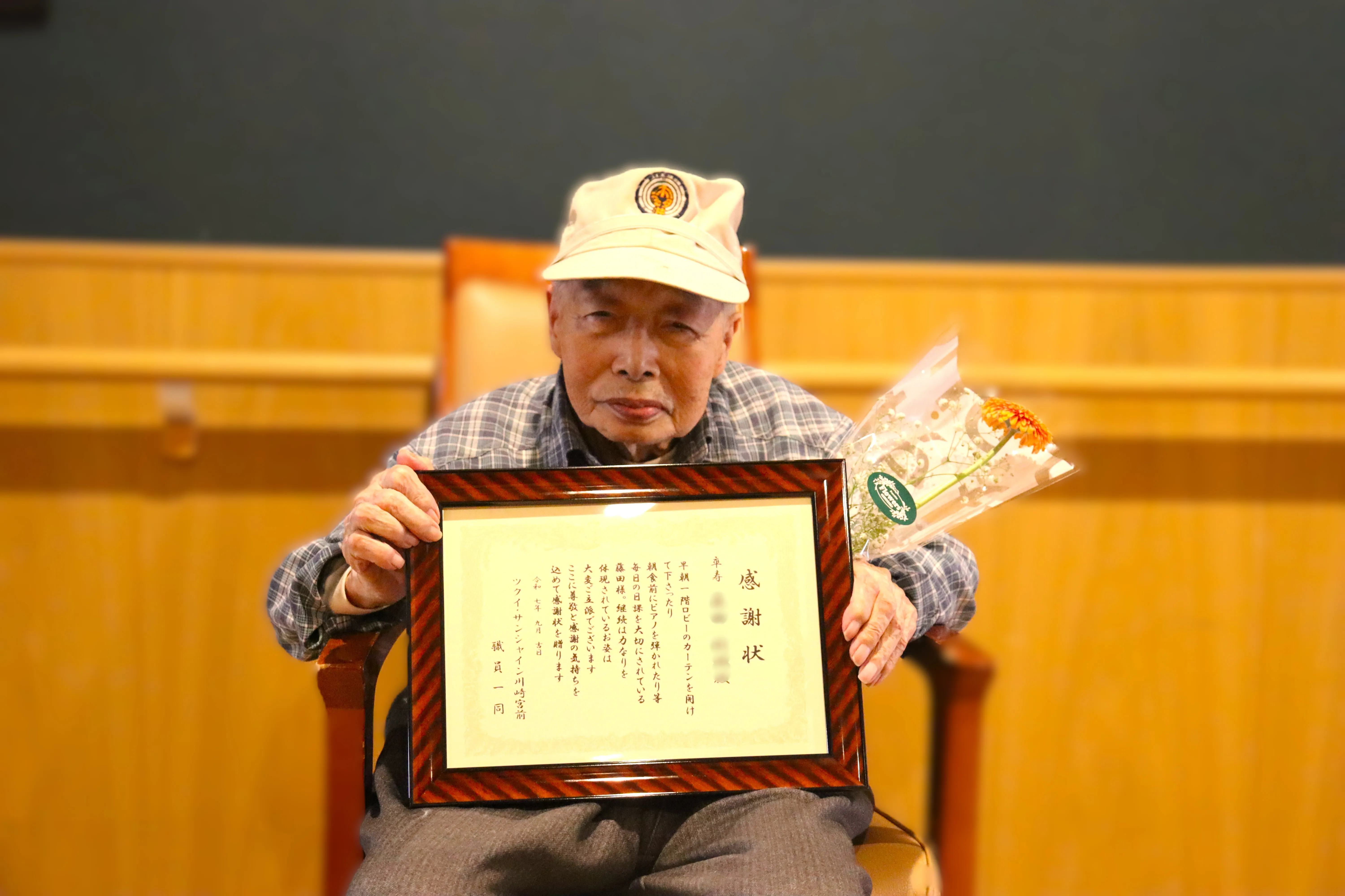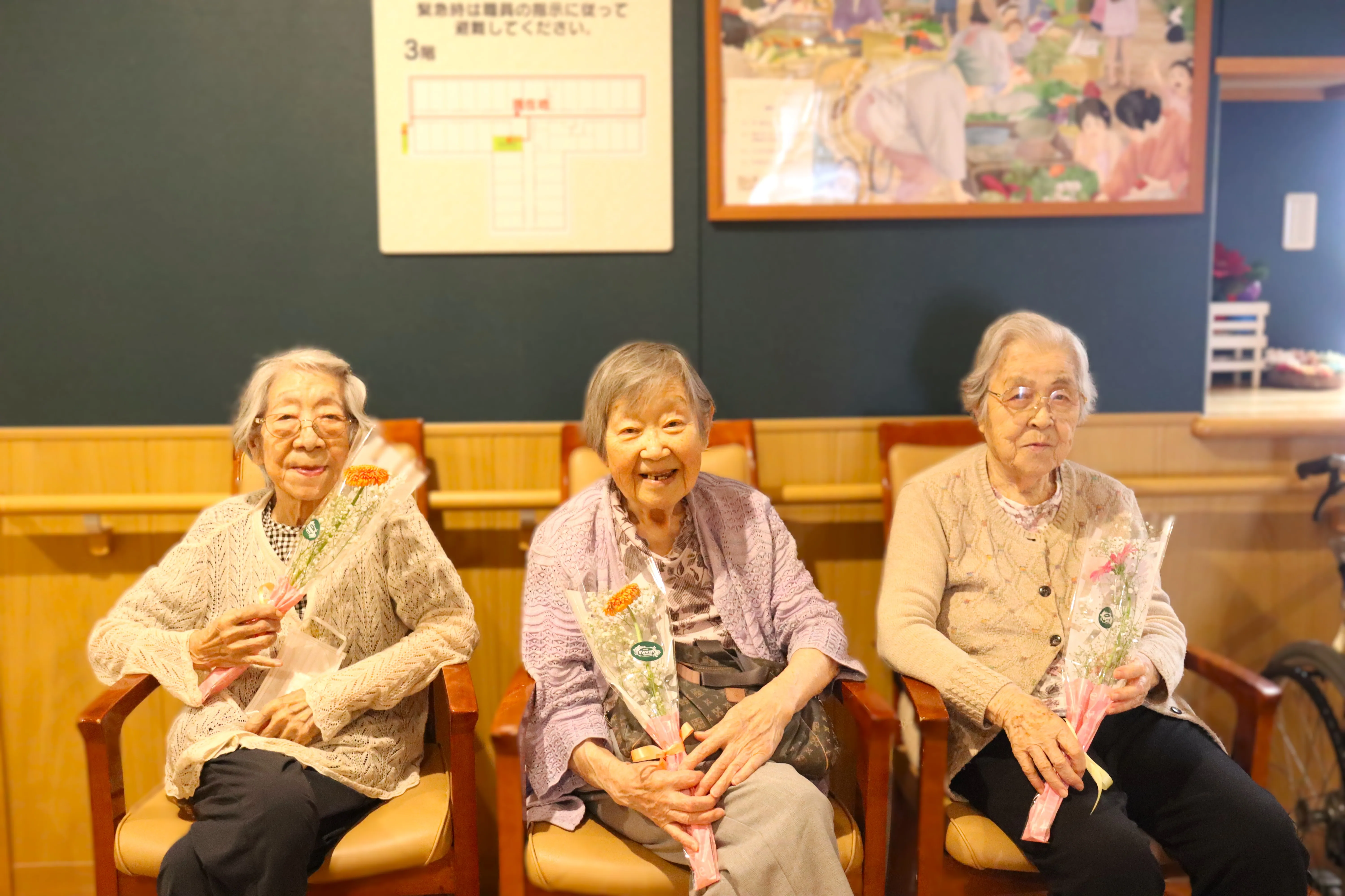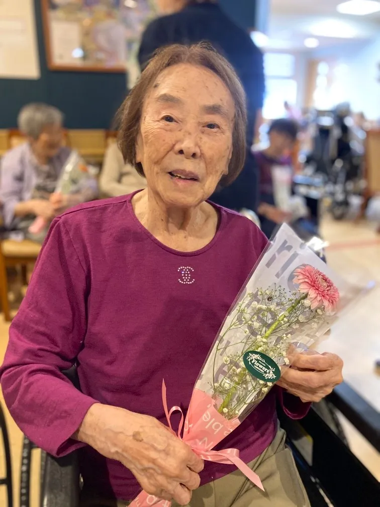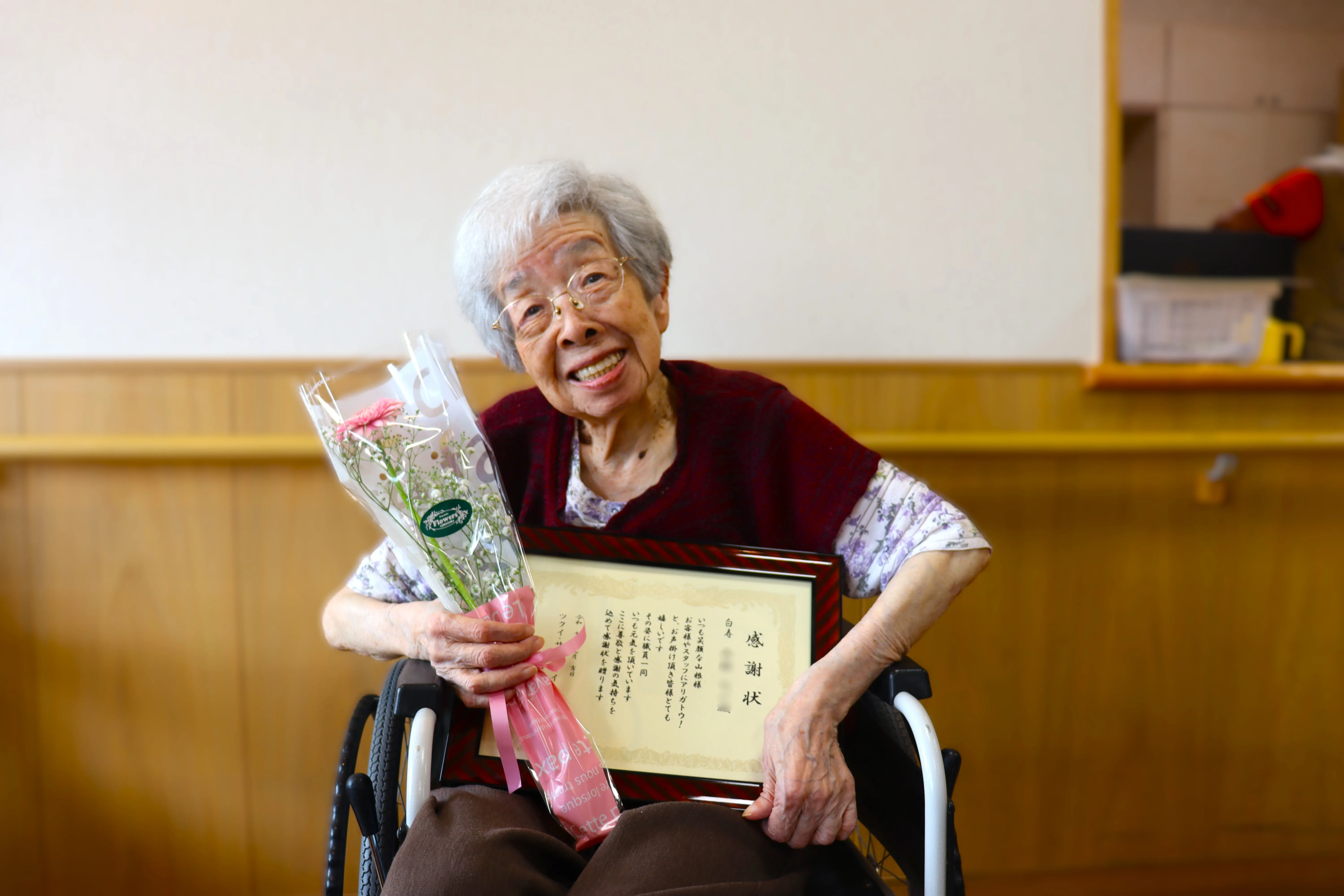 『米寿』や『喜寿』『卒寿』など、縁起のよいご年齢の方は、お花とともに表彰させて頂きました!