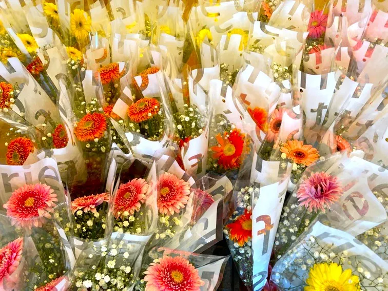 色んな種類のガーベラが届けられ、約70本並んだ姿はとても可愛らしく、圧巻でした!