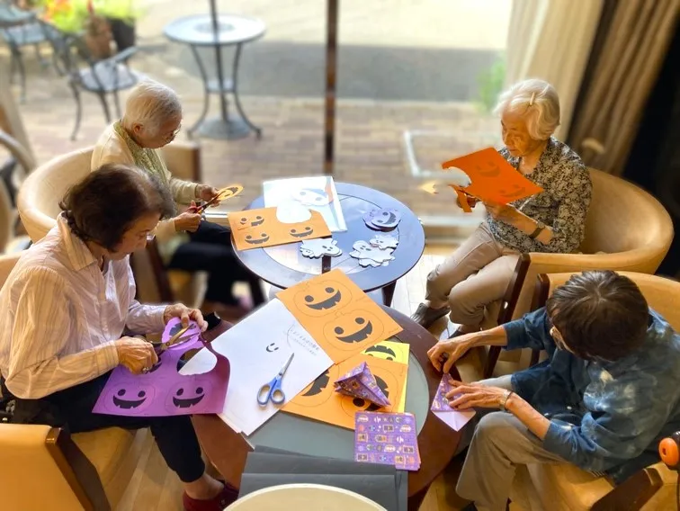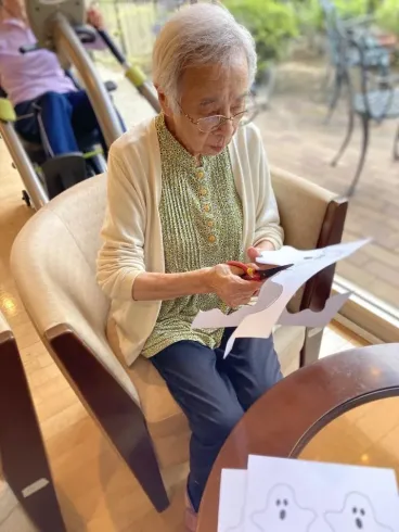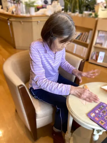 はじめは、皆様にお声掛けしてロビーに集まって頂き、掲示物作成を行いました。その後は皆さま気が向いた時に来訪いただき、ご自身が出来る範囲で行っていただく自由参加型で行いました。それでも皆様、「今日はやってる?」「まだやれることある?」と声をかけてくださり、無事に完成することができました!