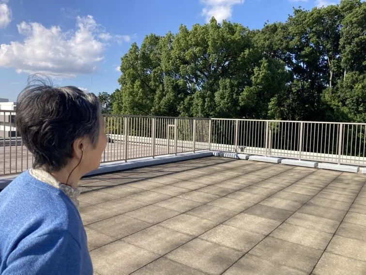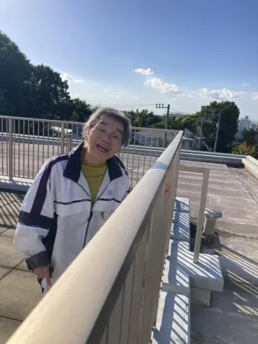 広々とした屋上では皆さま日光浴をされたり、ストレッチをしたり・・・。思い思いに過ごされています。