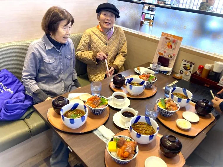 到着後は、メインイベントの昼食!海鮮丼や天丼、おそばでまったり幸せ気分を味わいましたぁ~