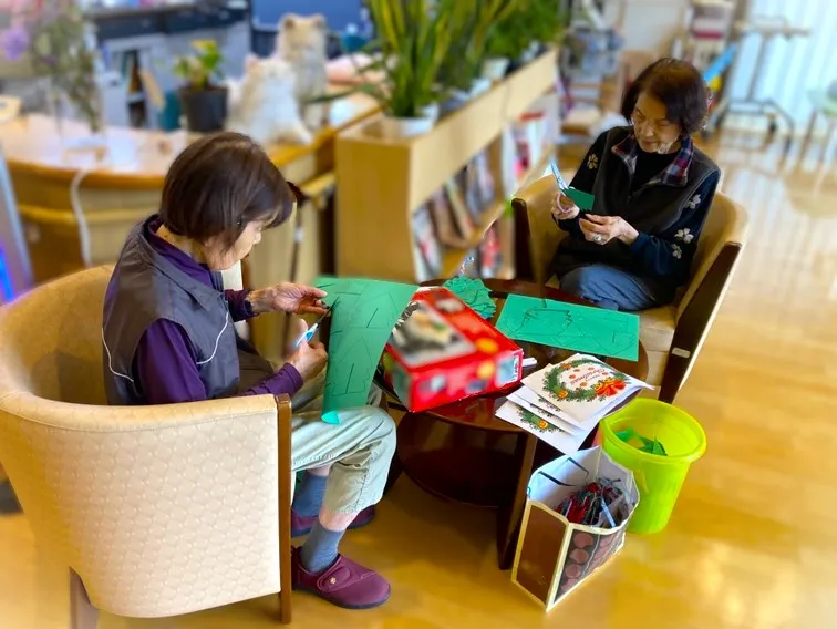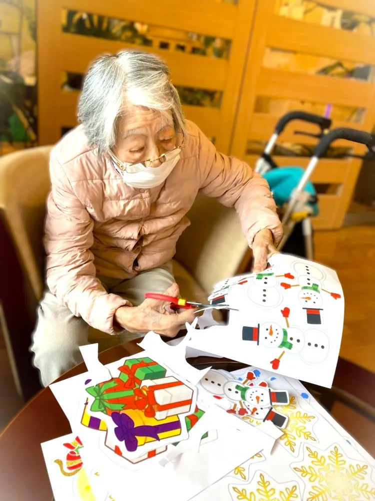 ハロウィンが終わったと同時に、クリスマスに向けて玄関ロビーの装飾づくりがスタートしました!皆様、待ってましたとばかりに、日々飾りつくりに精を出してくださいました!