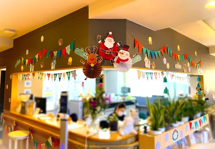 そして、本日やっとクリスマス仕様の玄関ロビーが完成致しました!一つ一つ手作りの装飾が、とても温かい気持ちにさせてくれる。そんな素敵な玄関ロビーをご紹介いたします。どうぞ~