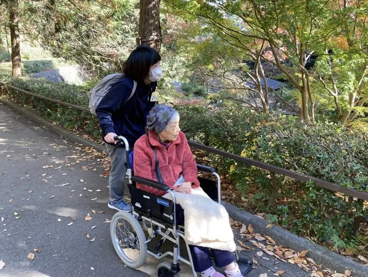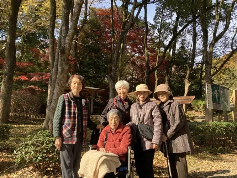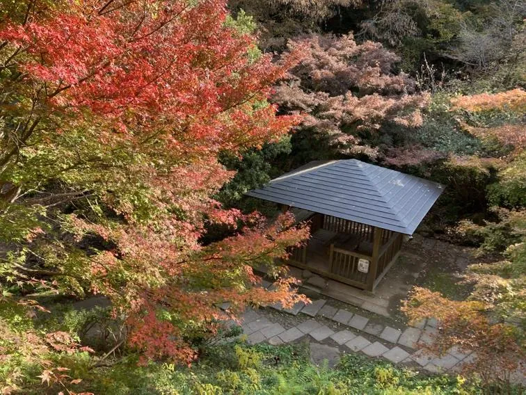 鮮やかな紅葉を眺めながら、皆様と一緒に外気浴を楽しみます。