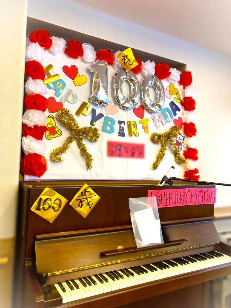 当施設のピアニストが心を込めた演奏で、お客様の100歳のお誕生日をさらに特別な日にさせていただきました。