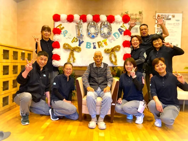表題の通り、100歳のお誕生日を迎えたお客様!記念撮影からスタートでございます。
