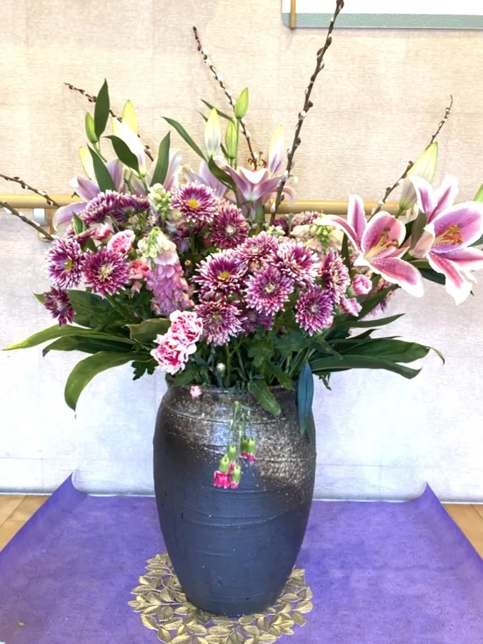 施設の玄関エントランスには、大きな生け花を飾っています。