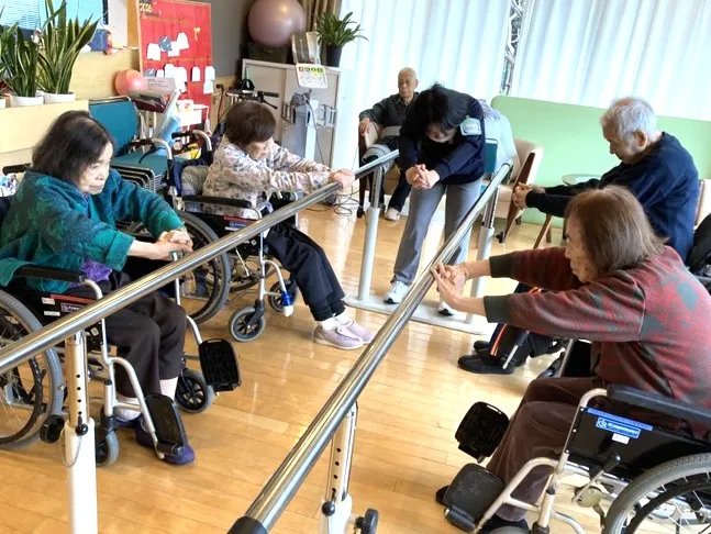 同じく指導員が最大8名のお客様と行う小集団訓練(イキイキ体操)。