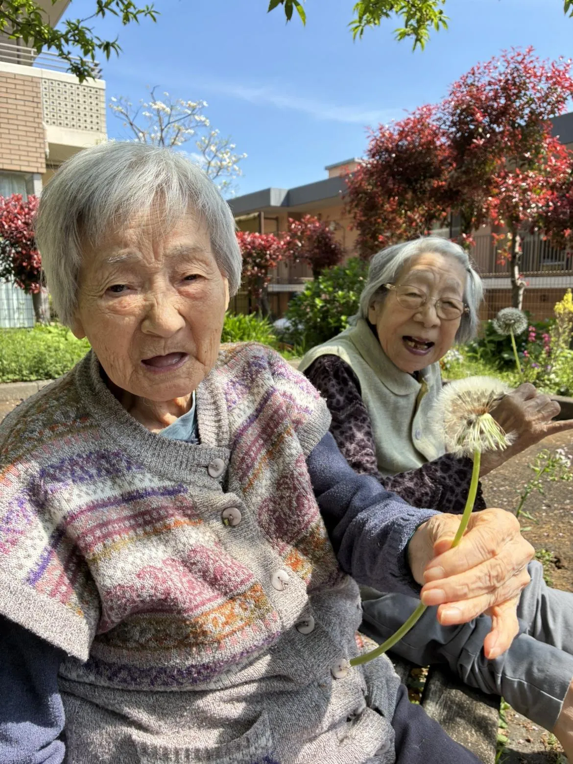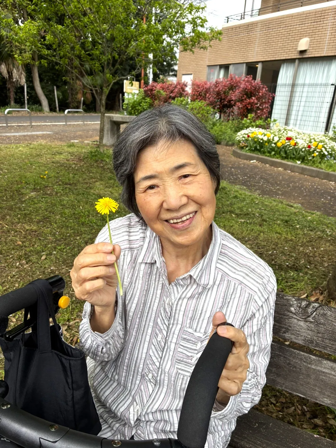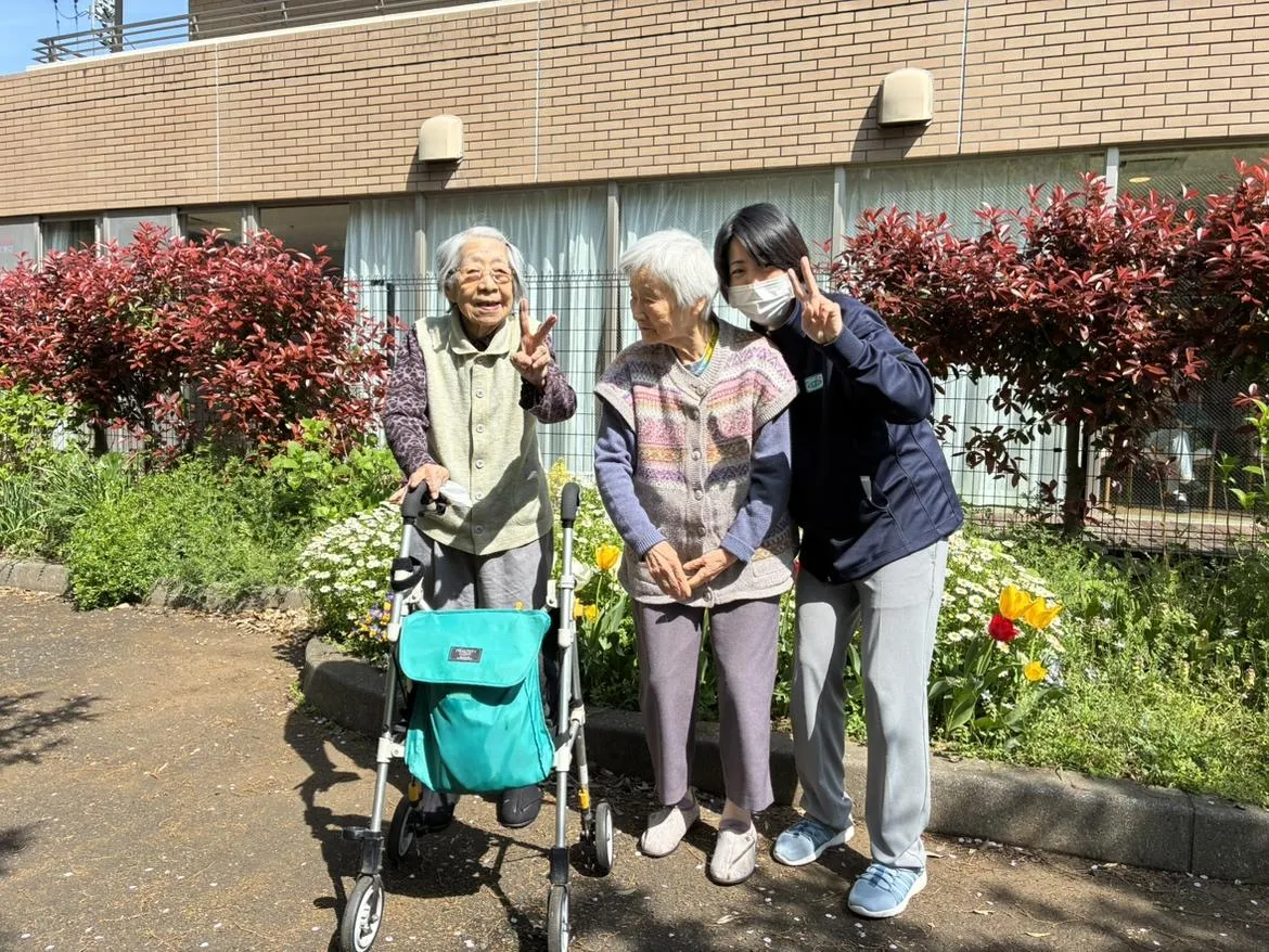 ホームに隣接する公園の草花が満開になり、ますます春らしい雰囲気になりました。