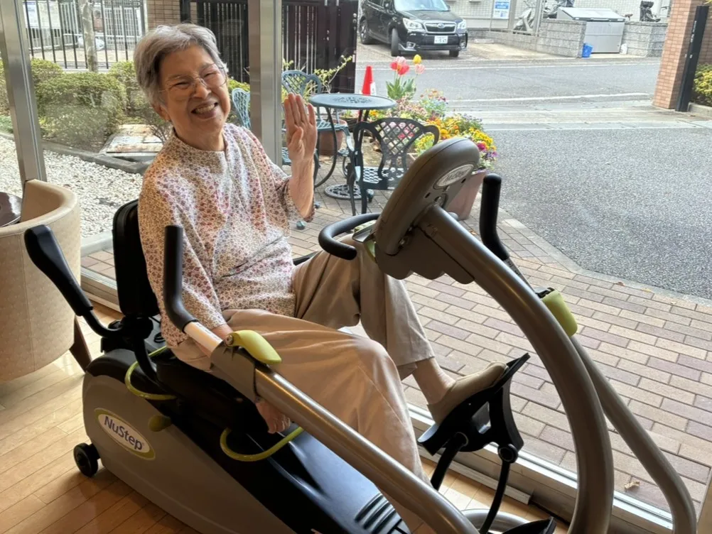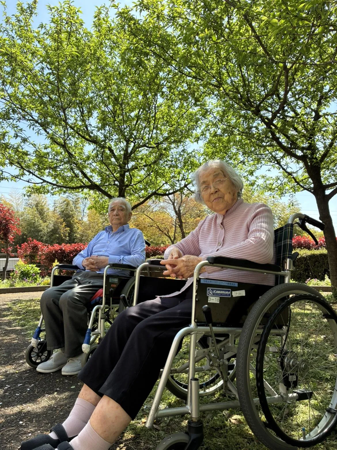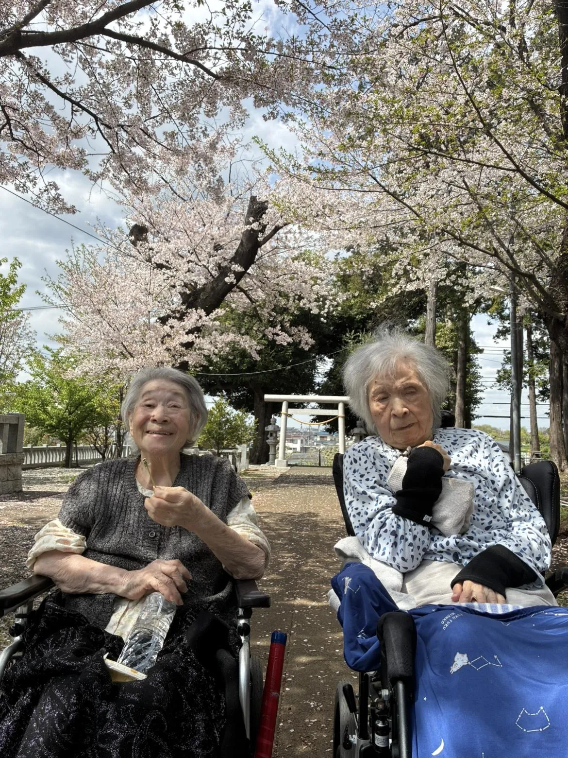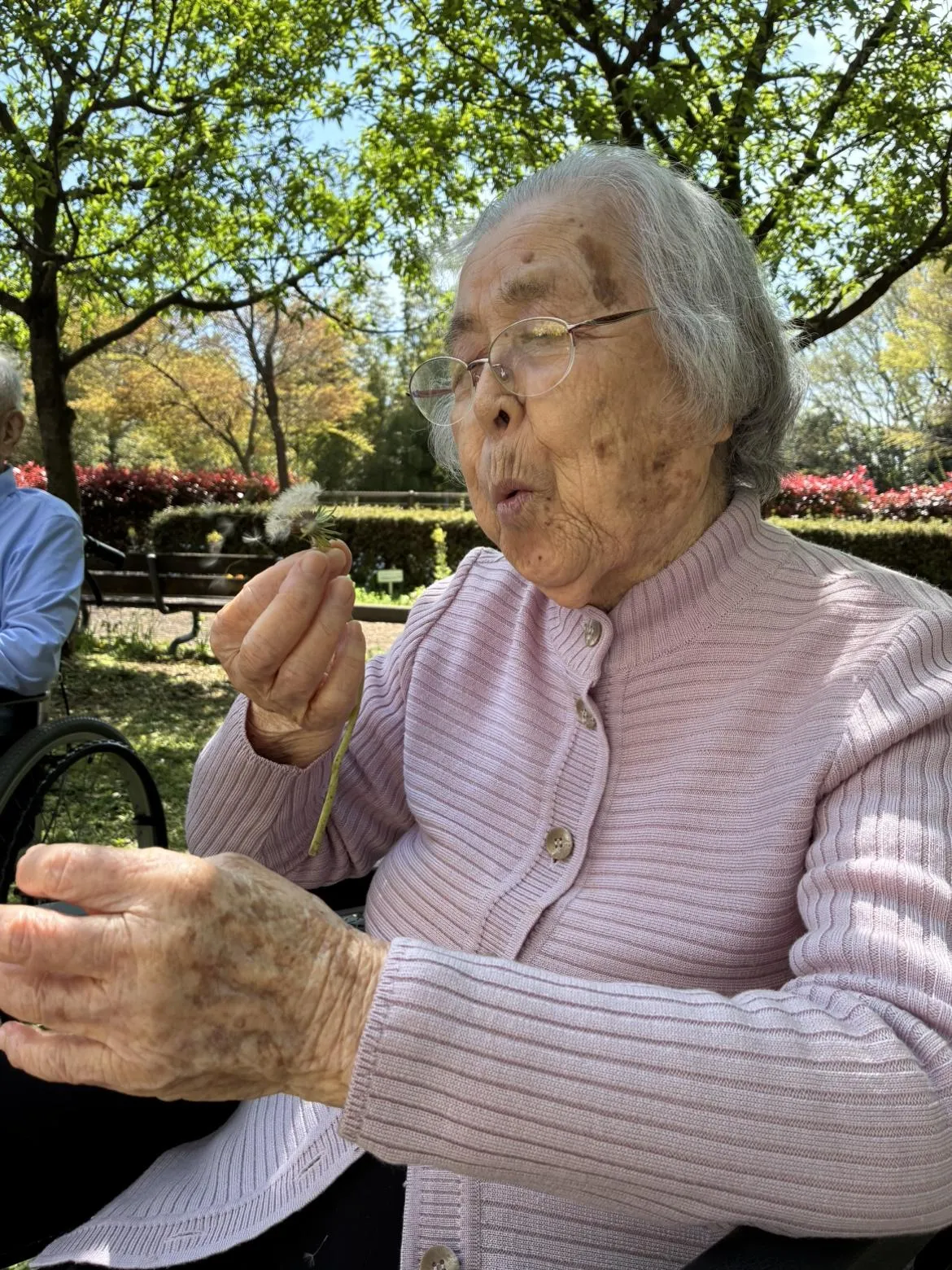 ホームに隣接する公園の草花が満開になり、ますます春らしい雰囲気になりました。