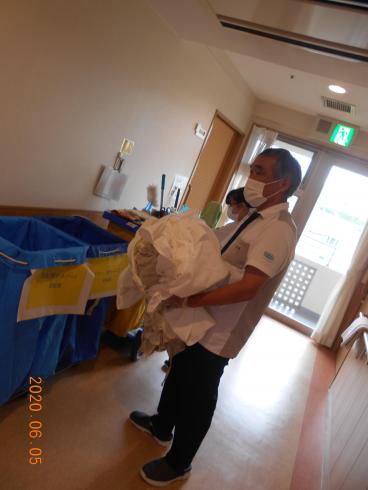 お客様のお部屋のお掃除やリネン類の交換、共有スペースの掃除と徹底した消毒、そして時には施設内の植木の剪定まで。