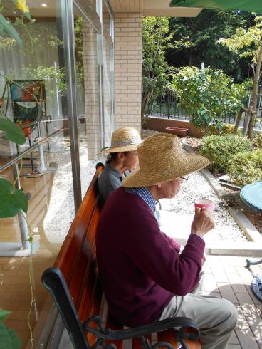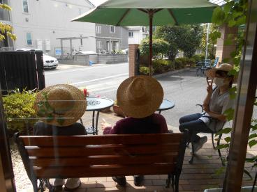 猛暑が続いていますが、午前中の早い時間に外のテラスでブレイクタイム。