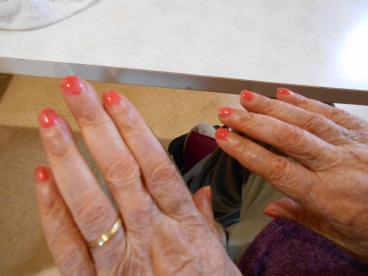 「もう年だから、、、」「恥ずかしい、、、」とおっしゃるお客様も、きれいな色のネイルをお見せすると、「やってみようかしら」と興味をもって頂けます。