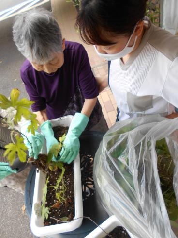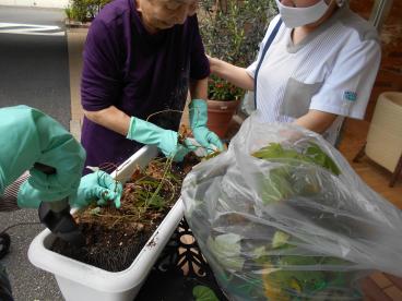 毎朝状態を見に来てくださっていたお客様と、苗を片付けました。